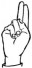 На ћирилици написано ЛАРА КОЈОВИЋ састоји се из 11 слова [?]. Исписано ћириличном једноручном азбуком за глувонеме: